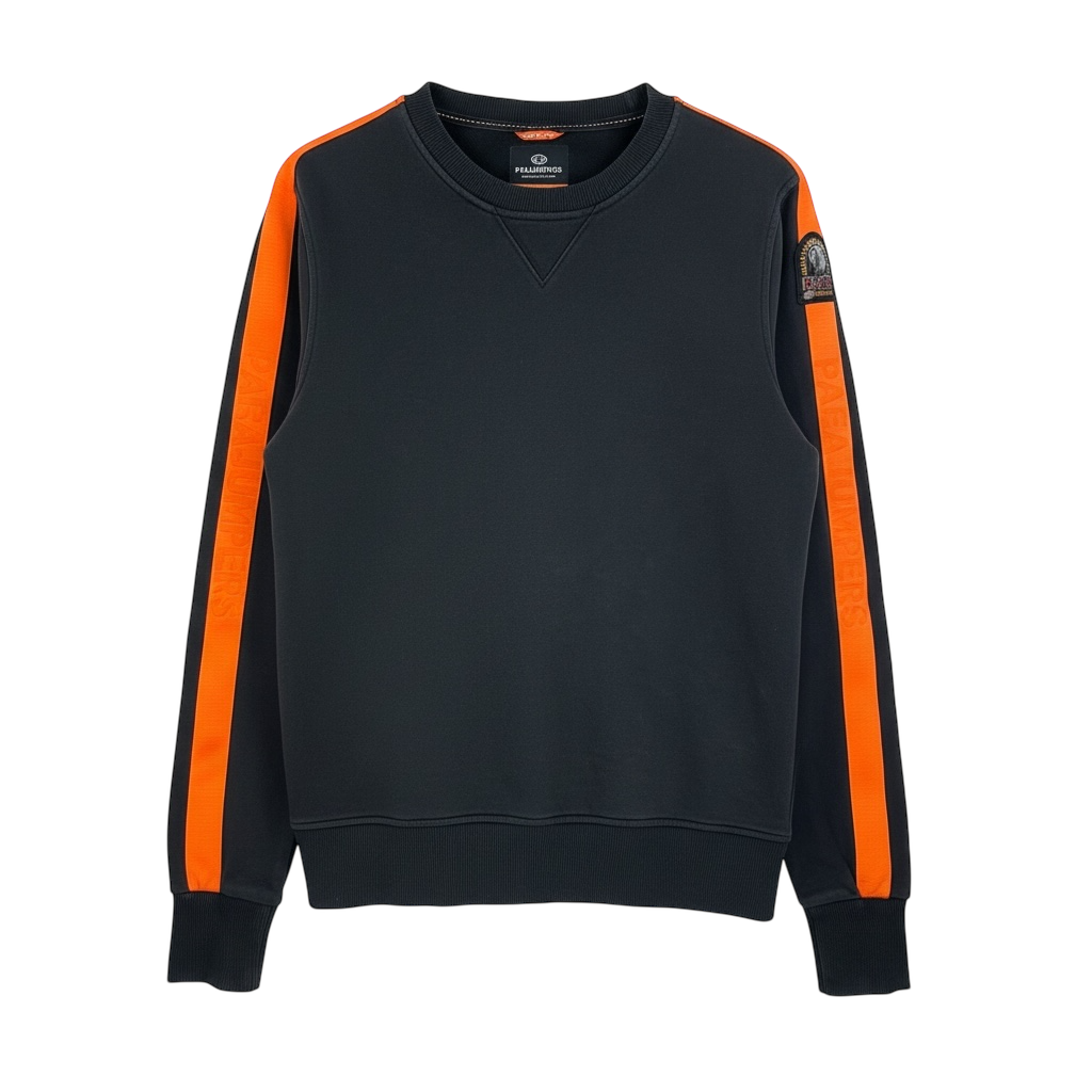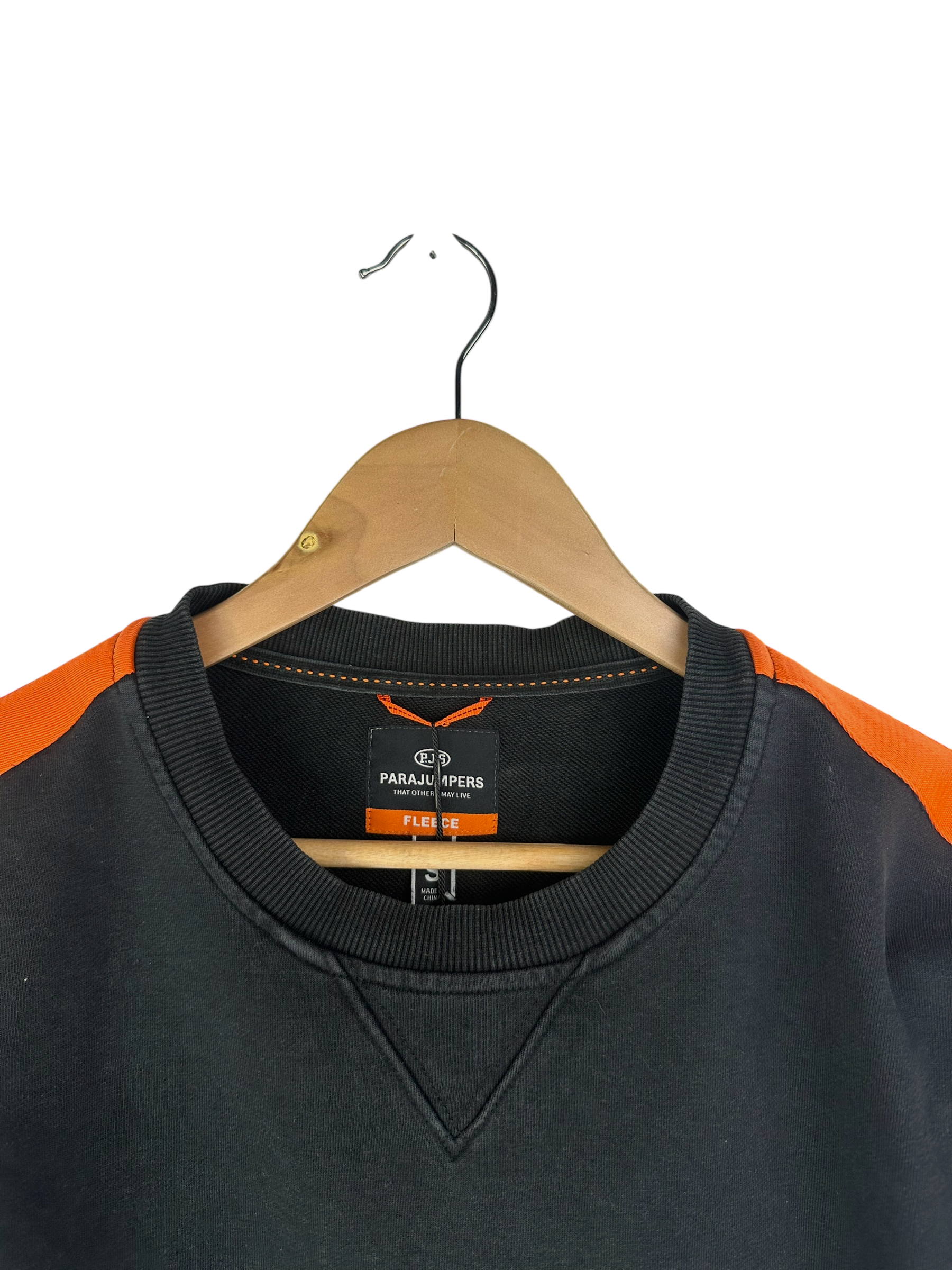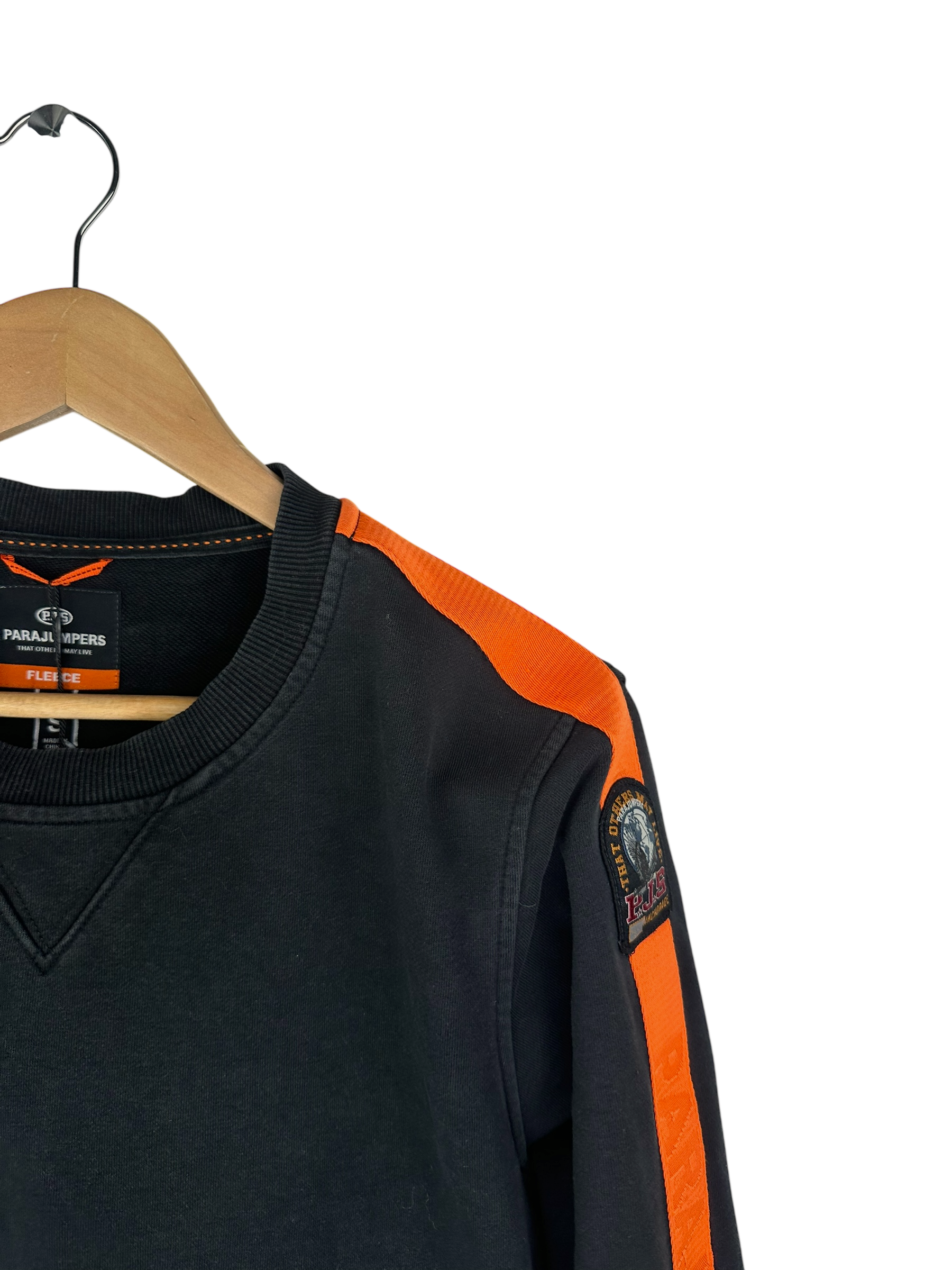 Parajumpers pull noir avec bandes orange et logo sur la manche.