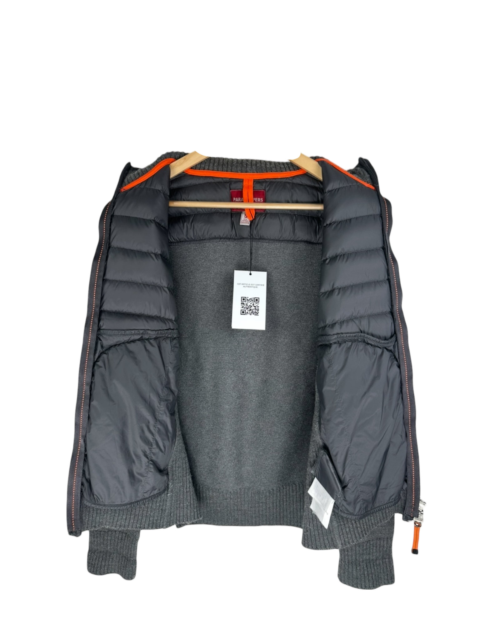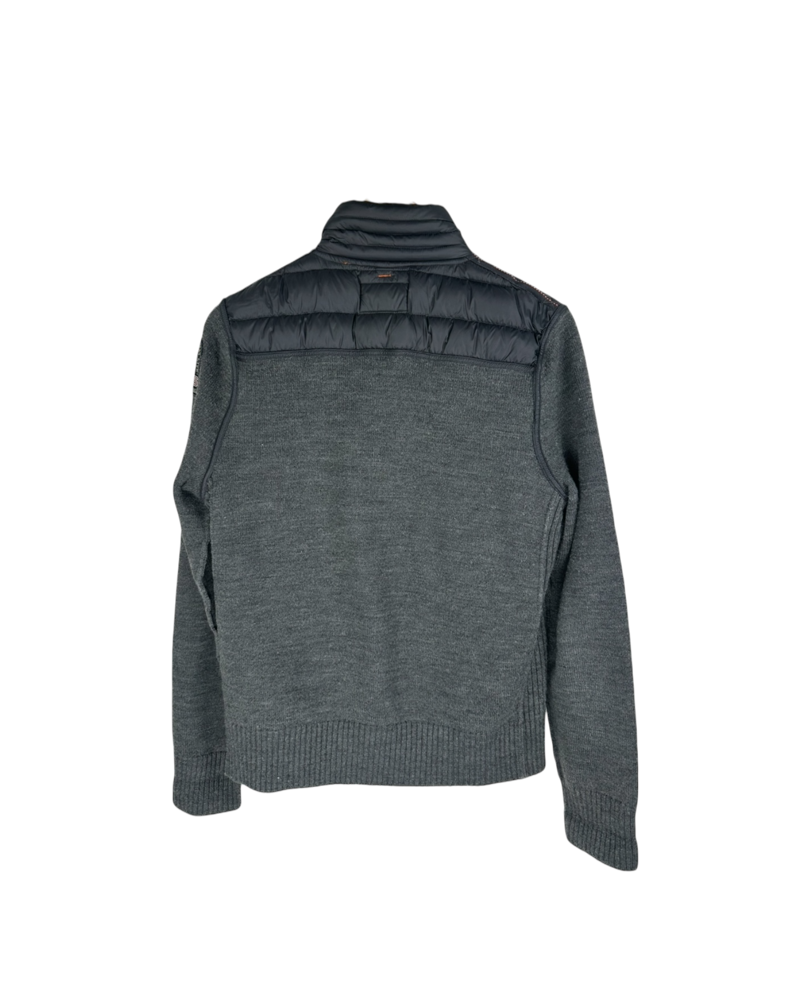 Parajumpers veste bi-matière ,devant en nylon rembourré matelassé, manches et dos en laine, col montant côtelé, fermeture éclair, poches zippées, écusson brodé Parajumpers sur la manche.