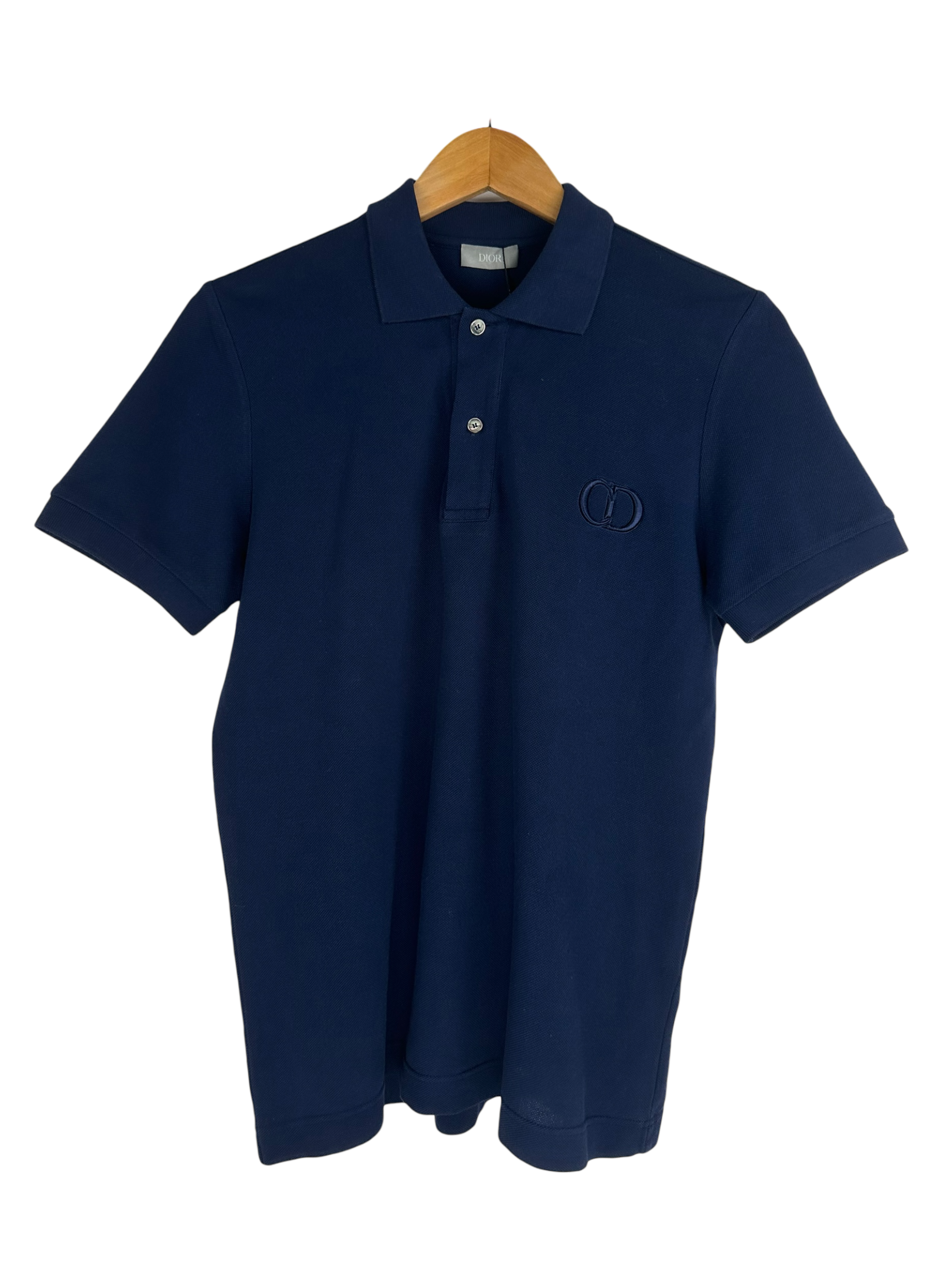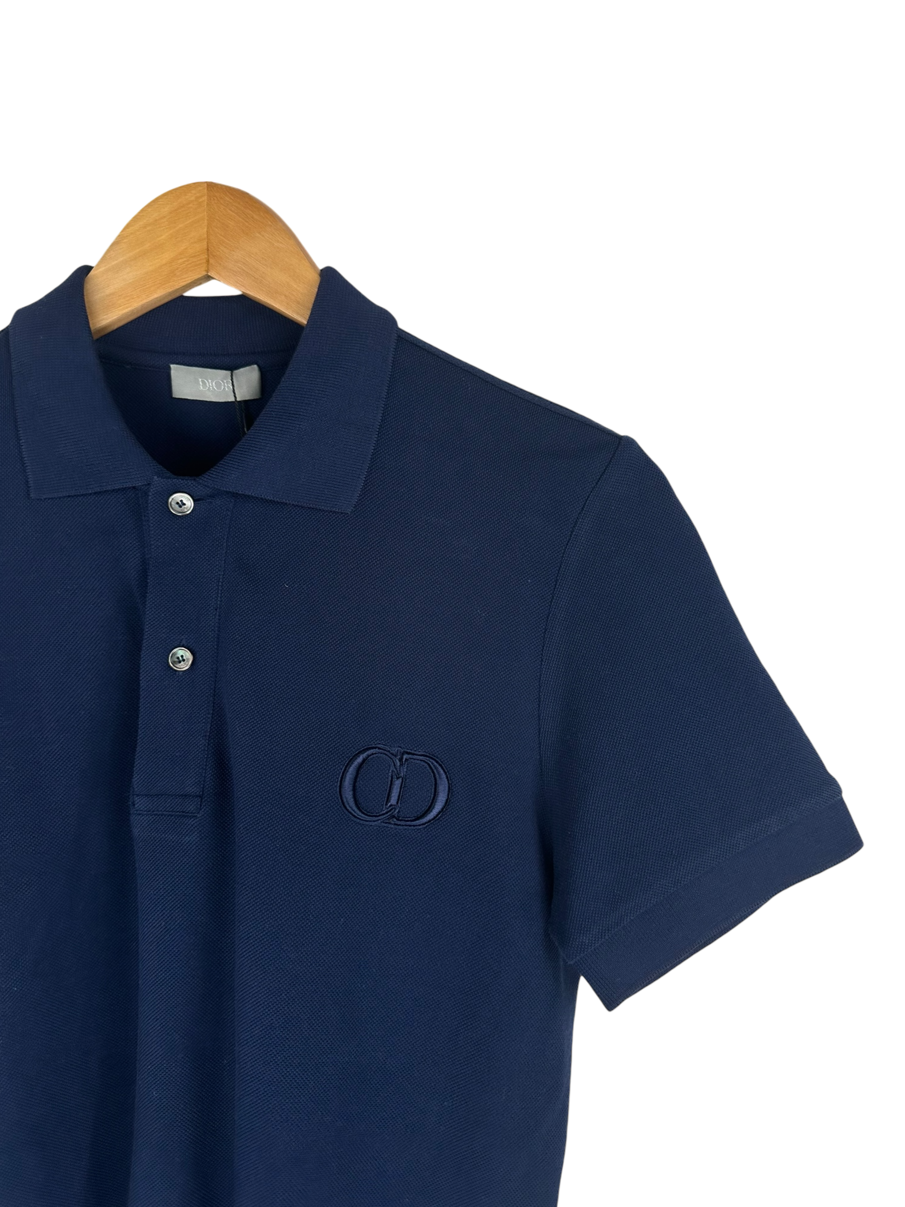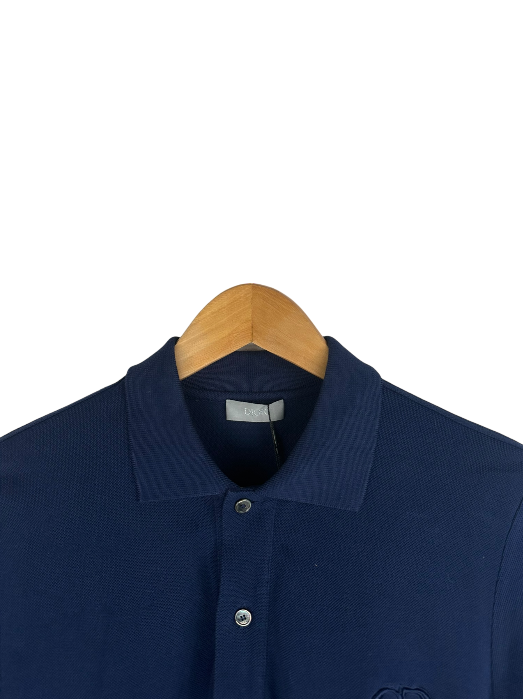 Polo Dior en coton bleu marine, logo DIOR brodé sur la poitrine.