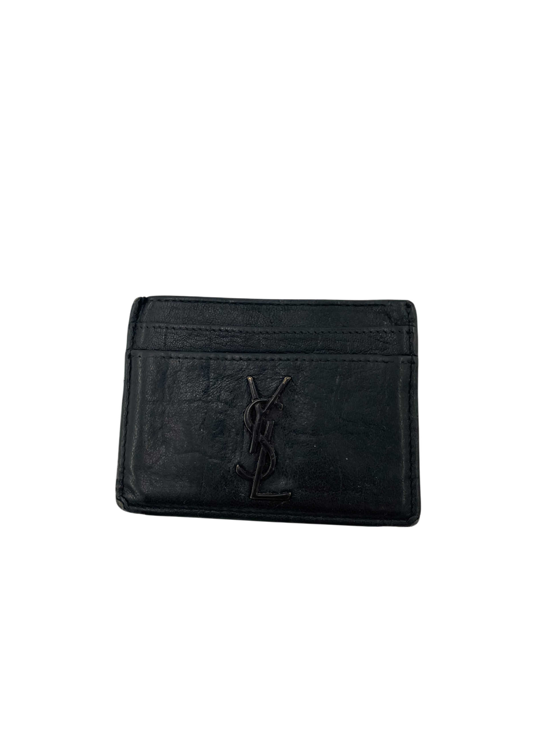 Porte carte Saint Laurent en cuir noir avec monogramme.