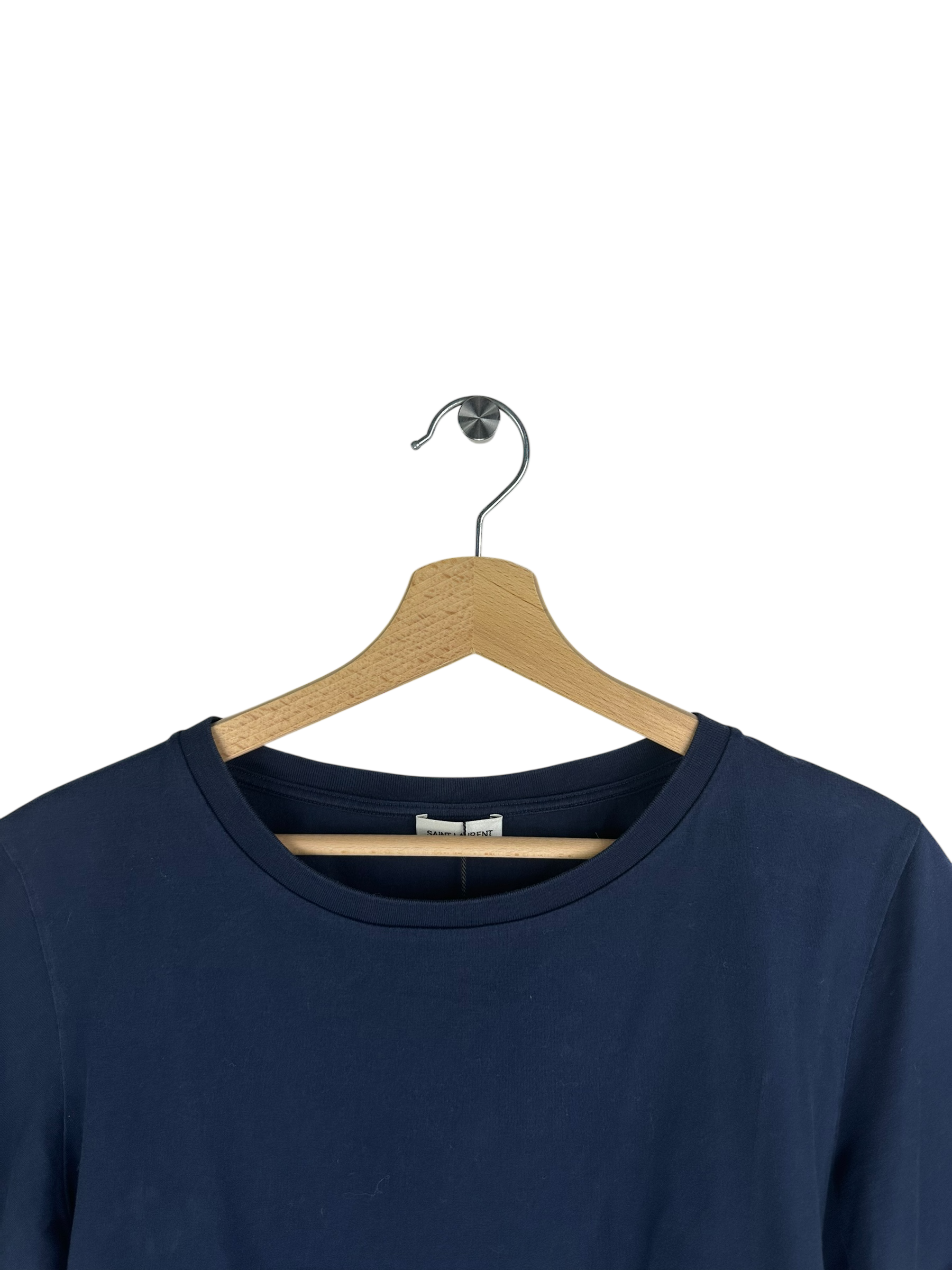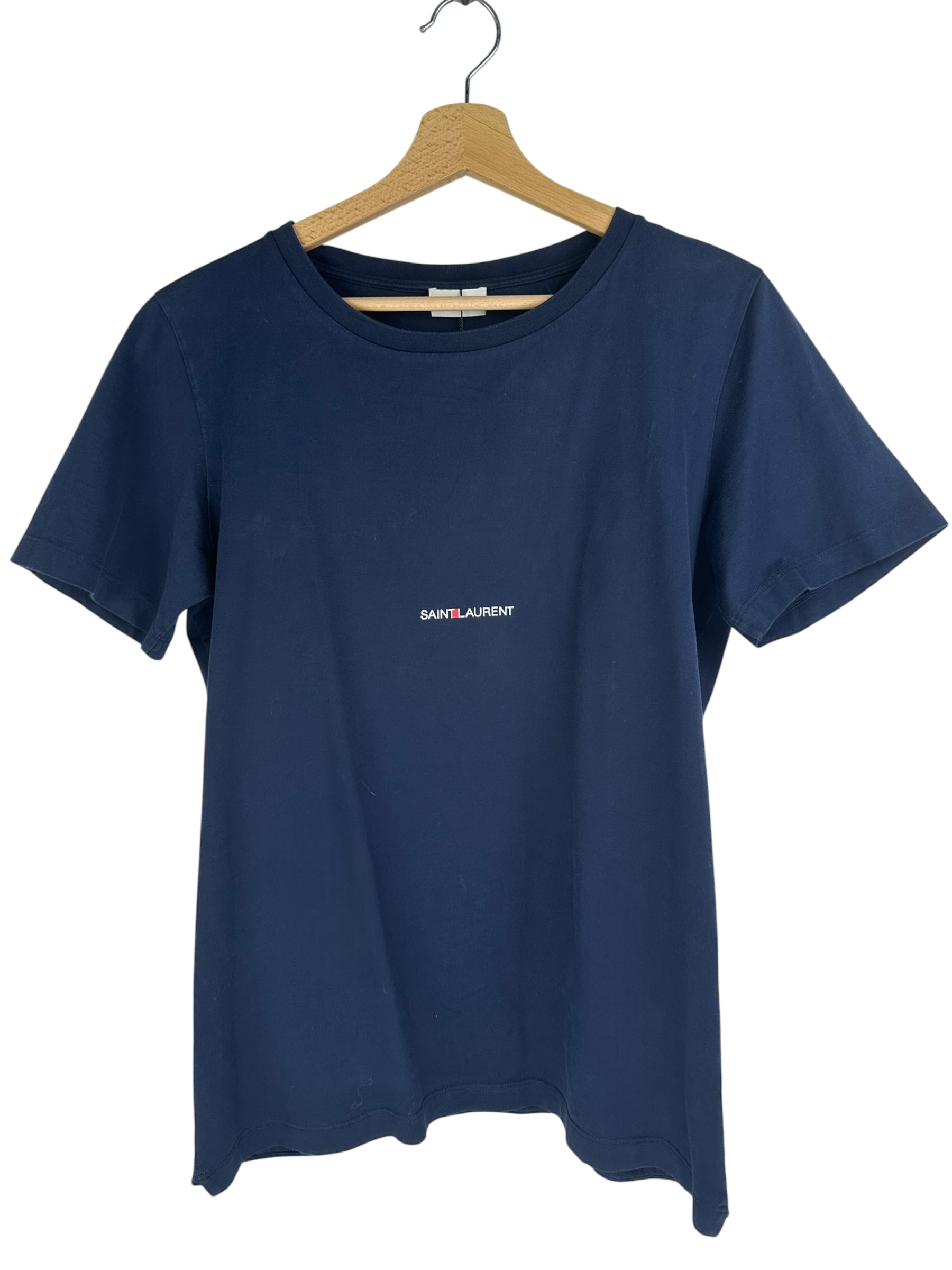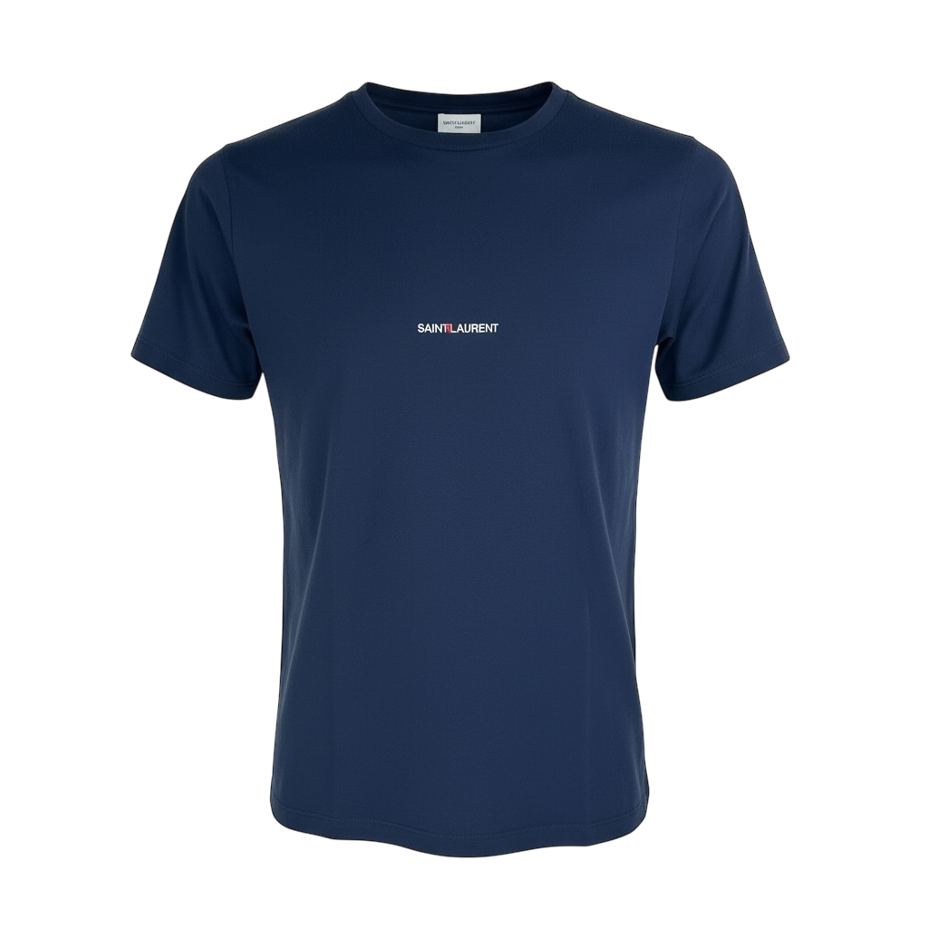 T-shirt marine avec le nom de la marque au milieu, t-shirt en coton bleu marine.