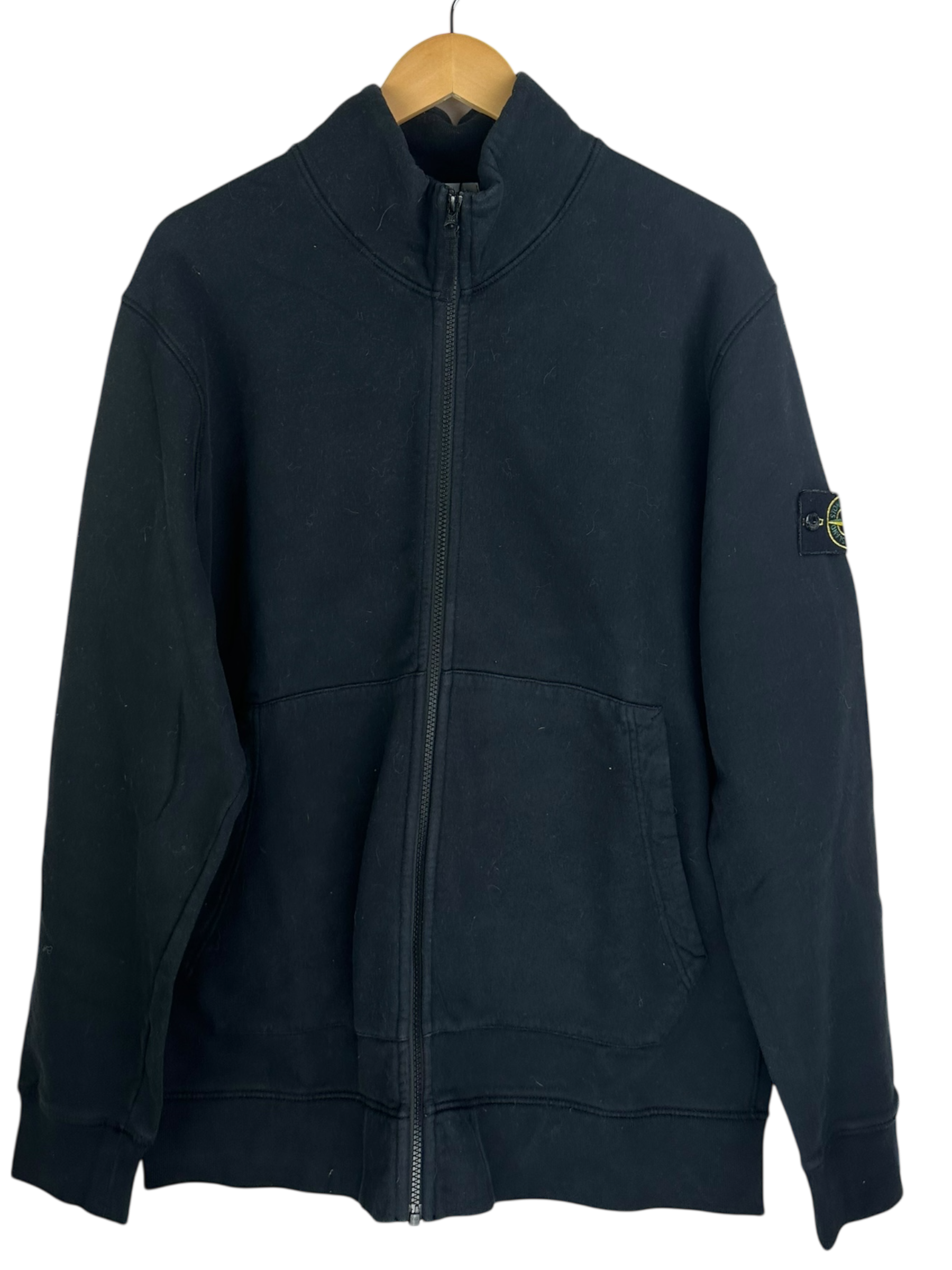 Pull avec fermeture éclair, col montant et un logo caractéristique sur la manche.