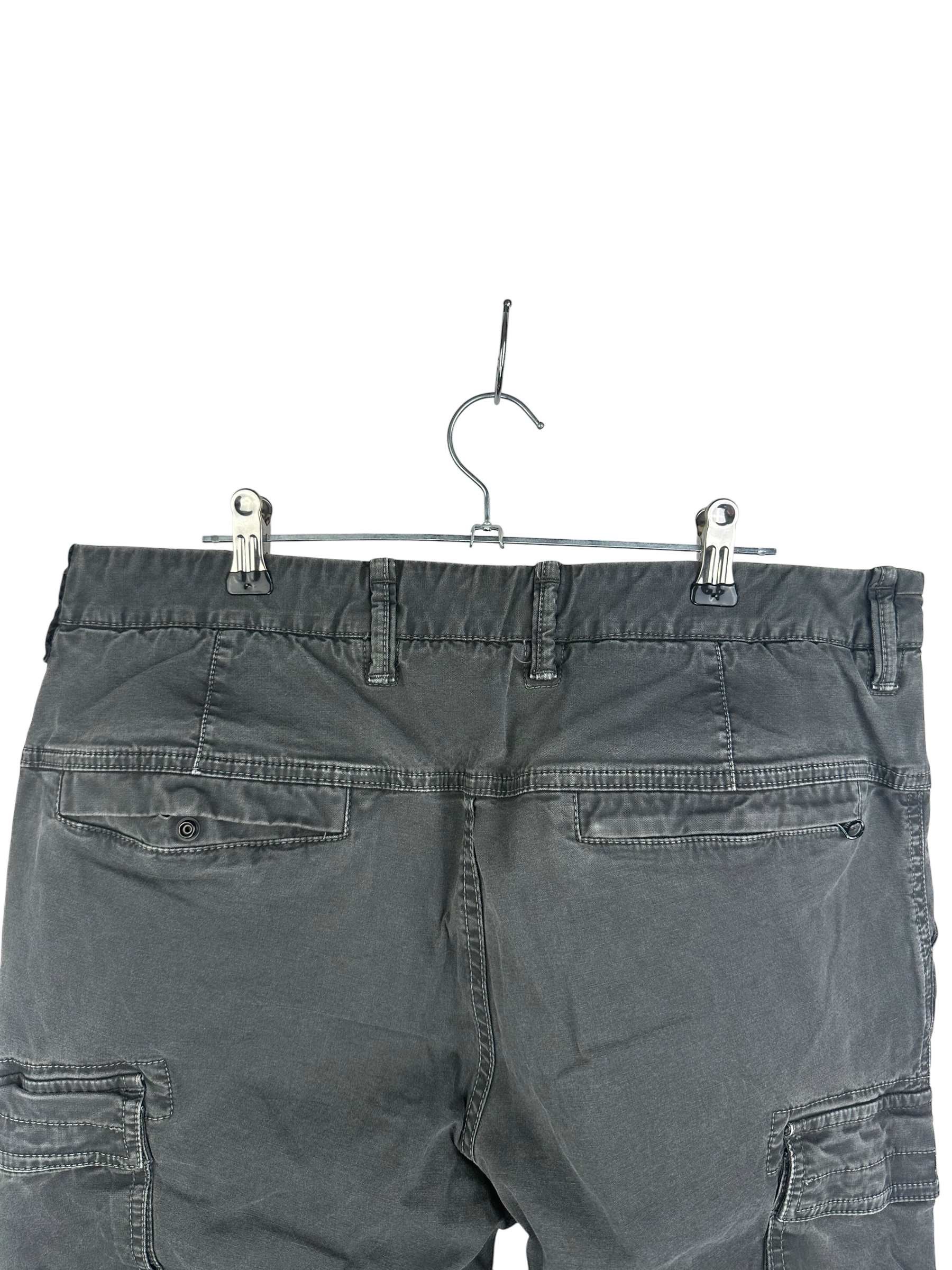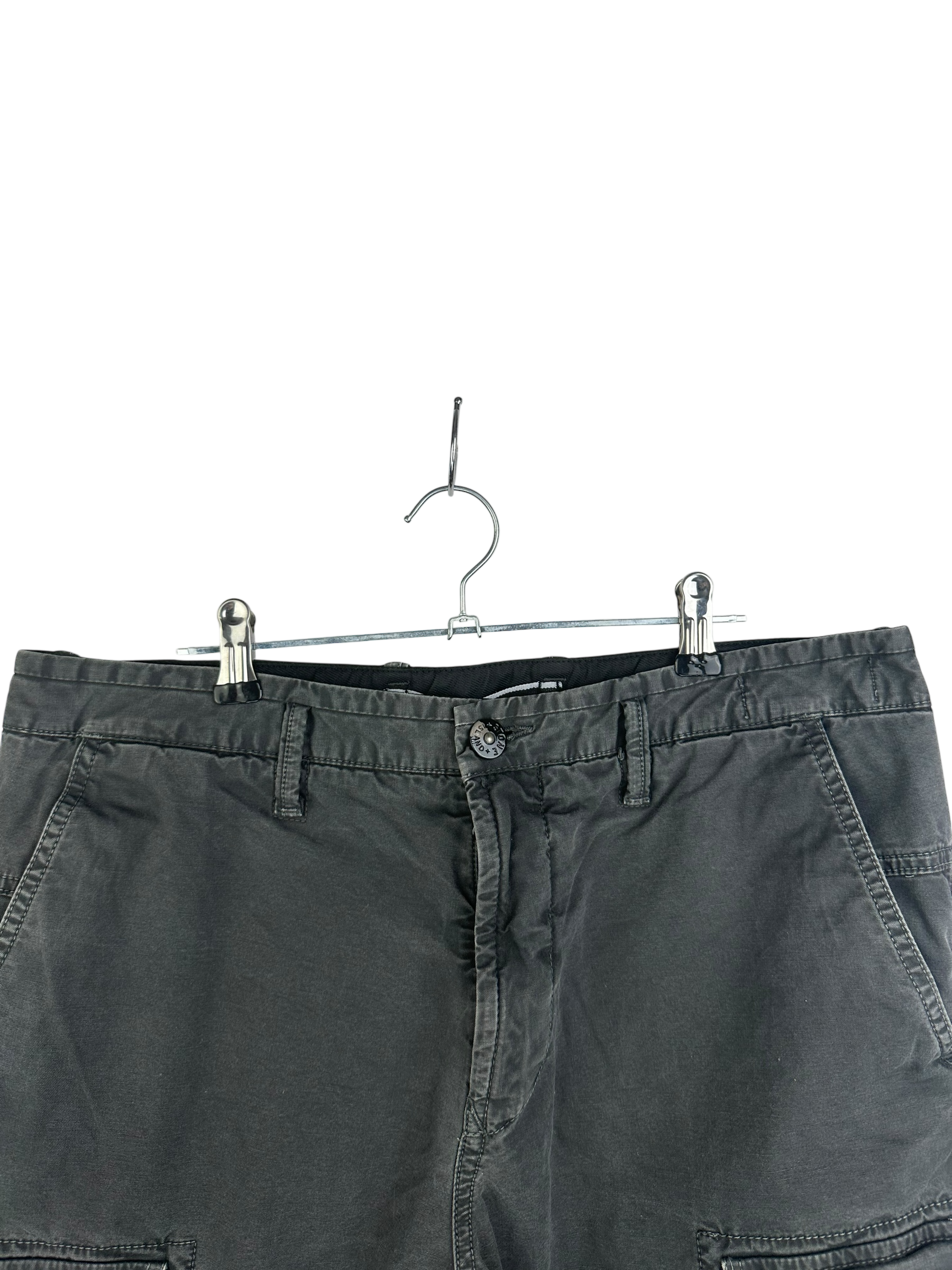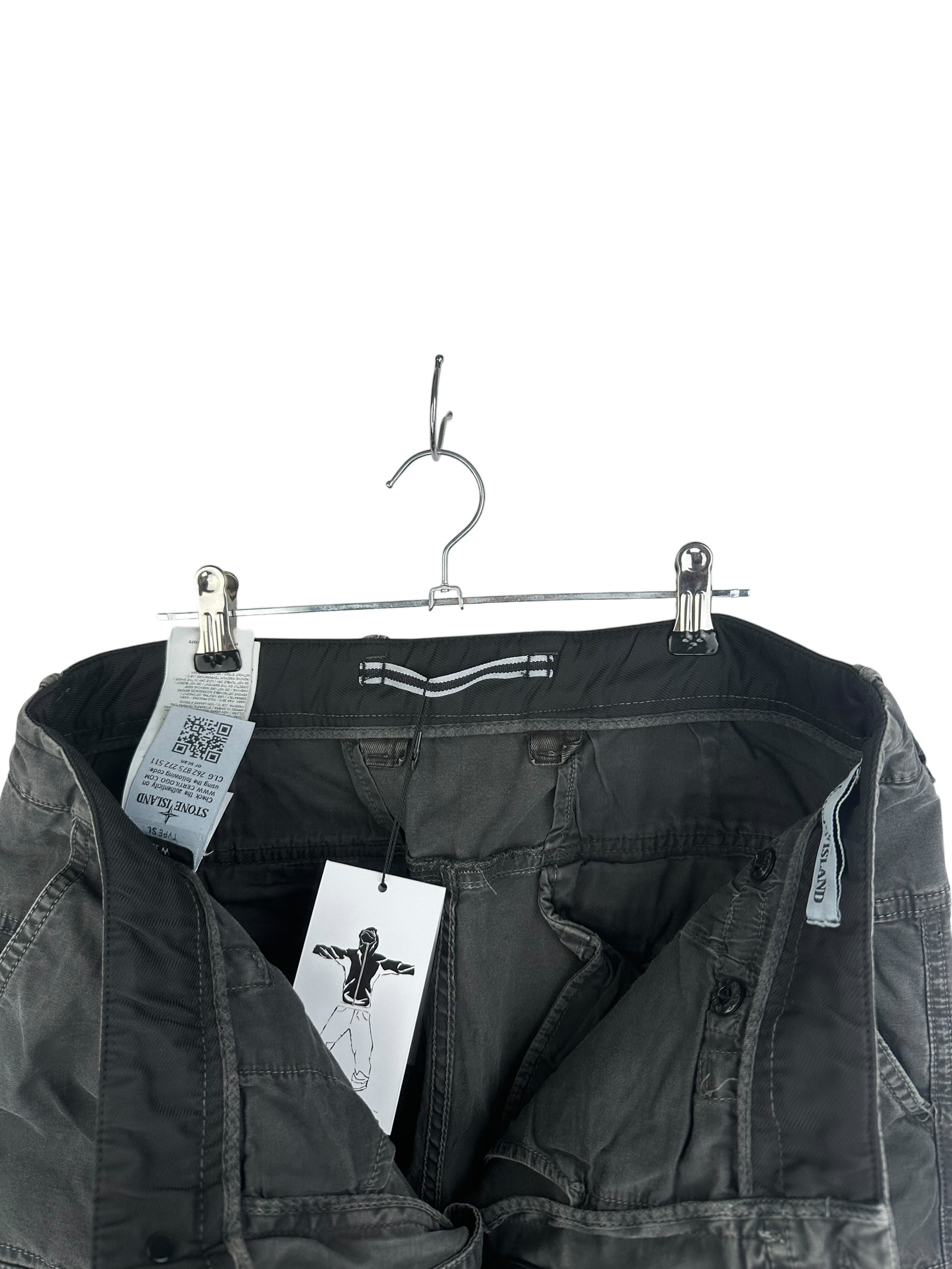 Pantalon Stone Island gris avec le patch sur la poche au niveau de la cuisse.